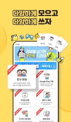 포인트 적립 방법 또한 다양하여 지루할 틈이 없습니다. 화면에 나타나는 벌 광고 시청부터 유저들과 소통하는 '꿀잼' 콘텐츠 감상, 친구 초대, 흥미로운 미션 수행, 그리고 꾸준한 출석체크까지, 아비앱은 다채로운 방식으로 당신의 노력을 보상합니다. 매일매일 조금씩 쌓이는 재미와 함께, 아비앱이 선사하는 새로운 앱테크의 경험을 지금 바로 시작하고 더 스마트한 소비 생활을 누려보세요.