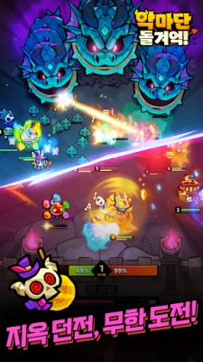 화려하고 때로는 깜찍한 외모 뒤에 숨겨진 지옥급 파괴력을 가진 악마들을 만나보세요. 각기 다른 특성과 능력을 지닌 악마들을 수집하고 육성하여 최강의 진형을 구축하십시오. 매 전투마다 주어지는 전략적인 선택과 시너지 효과는 지옥의 전장을 예측 불가능한 즐거움으로 가득 채울 것입니다. 무작위로 등장하는 상황 속에서 기지를 발휘하거나, 치밀한 전술로 운명을 개척하며 짜릿한 승리의 쾌감을 경험하세요. 당신의 결정 하나하나가 지옥 군단의 승패를 좌우합니다.
