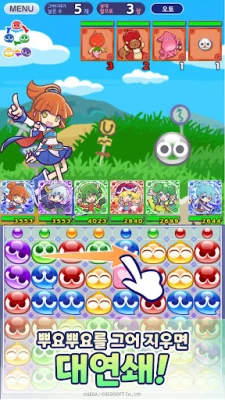 최강의 마도사를 꿈꾸는 당신, '뿌요뿌요!! 퀘스트'의 매혹적인 세계로 초대합니다. 손끝에서 펼쳐지는 짜릿하고 새로운 퍼즐 경험을 만나보세요. 필드 위에 가득한 형형색색의 뿌요들을 손가락으로 부드럽게 이어서 같은 색깔 4개를 모으면, 눈앞에서 시원하게 터져 사라집니다. '뿌요뿌요' 고유의 즐거움에 더해진 직관적인 터치 조작은 퍼즐 게임이 낯선 초보자부터 숙련된 마도사까지, 누구나 쉽고 간편하게 게임에 몰입할 수 있도록 돕습니다. 하나의 움직임으로 시작되는 거대한 연쇄 반응의 쾌감을 맛보고, 전략적인 판단력으로 최고의 콤보를 만들어내며 짜릿한 승리를 쟁취하세요!