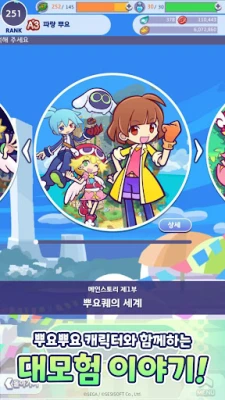 단순한 퍼즐 실력을 넘어선 장대한 모험이 '뿌요퀘'의 광활한 대륙에서 당신을 기다립니다. 흥미진진한 퀘스트를 따라 신비로운 던전과 다채로운 지역을 탐험하고, 저마다의 특별한 이야기와 개성을 지닌 수많은 캐릭터들과 박진감 넘치는 뿌요 배틀을 벌이세요. 뿌요를 능숙하게 연쇄시켜 강력한 마법 공격을 퍼붓고, 앞을 가로막는 강력한 적들을 차례로 쓰러뜨리며 궁극의 마도사로 성장하는 여정을 직접 경험해 보세요. 당신의 선택과 실력이 '뿌요퀘' 세계의 운명을 결정할 것입니다.