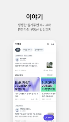 단순한 정보 제공을 넘어, 호갱노노 부동산앱은 깊이 있는 인사이트를 제공합니다. '이야기' 탭에서는 실제 거주민의 생생한 리뷰와 부동산 전문가들이 직접 쓴 칼럼을 통해 단지의 숨겨진 가치를 발견할 수 있습니다. 층별 조망과 일조량까지 상세히 보여주는 '3D 단지 투어'로 발품 없이 아파트를 미리 경험하고, '학군' 및 '학원가' 정보로 자녀 교육 환경까지 꼼꼼히 살필 수 있습니다. 재건축/경매 현황과 최신 분양 소식, 그리고 실시간 랭킹까지, 호갱노노 부동산앱은 당신의 스마트한 부동산 파트너입니다.