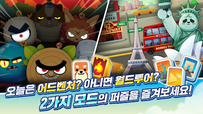 끝없이 펼쳐지는 퍼즐 모험 속으로 떠나보세요. 용사 블루와 마오가 되어 동물 친구들을 구하고 세계를 탐험하는 장대한 어드벤처 모드를 통해 다채로운 스토리를 경험할 수 있습니다. 목표는 세계 일주! 월드 투어 모드에서는 퍼즐을 클리어할 때마다 새로운 국가와 문화를 만나며 전 세계를 누비는 특별한 여정을 만끽할 수 있습니다. 매일 세 번의 기회로 보물상자를 열어 푸짐한 선물을 획득하는 즐거움도 놓치지 마세요.
