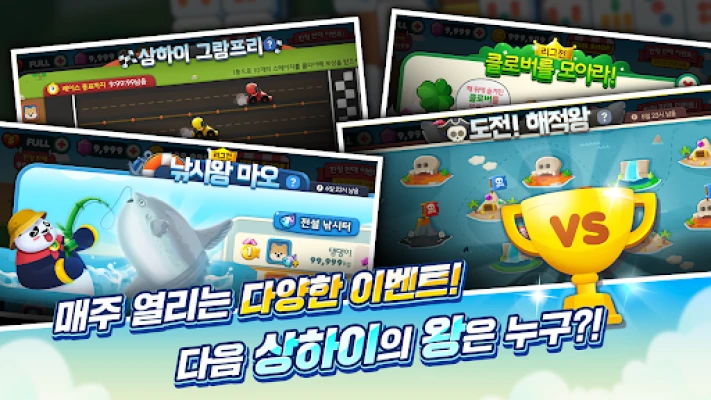 위메이드플레이가 선사하는 상하이 애니팡에서는 매주 새로운 경쟁 이벤트가 펼쳐져 퍼즐 실력을 뽐낼 수 있는 기회를 제공합니다. 낚시배를 가득 채우는 '낚시왕 마오'부터 깃발의 주인을 가리는 '도전 해적왕', 그리고 새롭게 추가된 '상하이 그랑프리'까지, 다채로운 이벤트에서 다른 플레이어들과 경쟁하며 랭킹 상위권에 도전해 보세요. 퍼즐을 풀며 쌓아 올린 당신의 실력이 최고의 영광으로 빛나는 순간을 상하이 애니팡에서 경험할 수 있습니다.